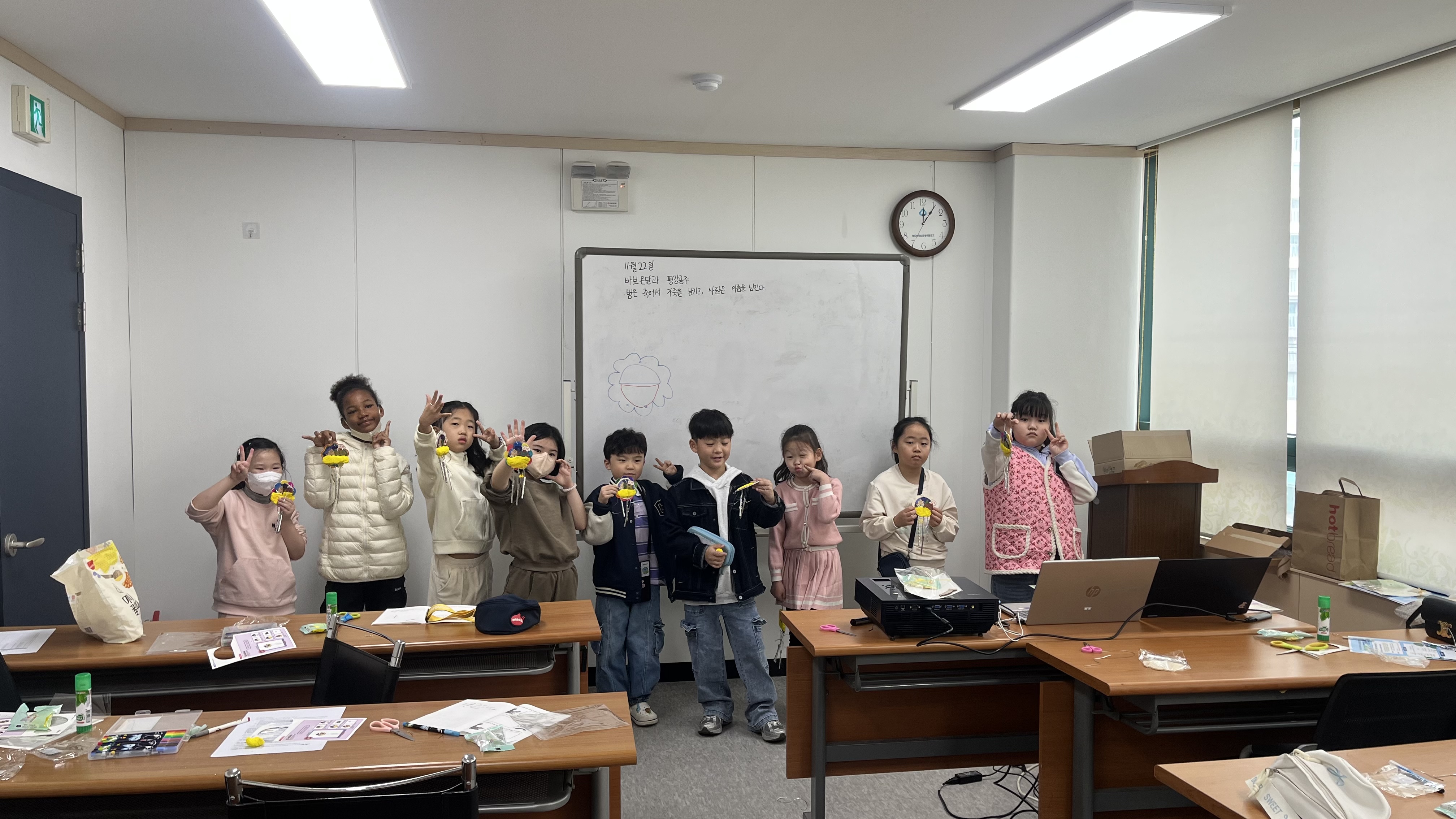 As a follow-up creative activity, the students took part in a hands-on experience titled The Rabbit’s Liver Doorbell-Making. Using symbolic elements from the folktale, the children crafted their own personalized doorbells, naturally engaging in cooperation and communication throughout the process. A sharing session was also held for students to present their completed works, which further enhanced their sense of achievement and satisfaction. Midway through the program, traditional Korean snacks (yakgwa) were provided, adding a delightful treat for the participants.