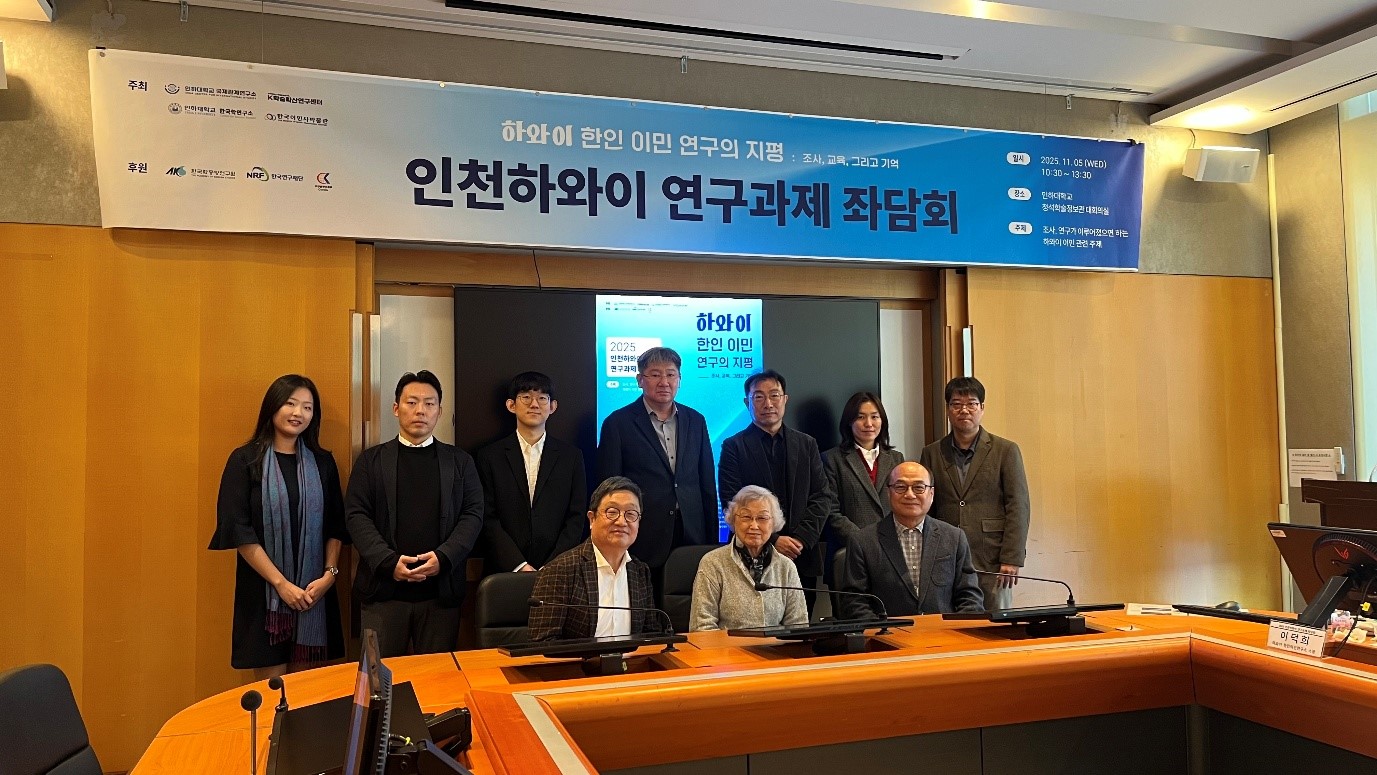 On November 5, an academic roundtable was held at the Grand Conference Room of the Jungseok Memorial Library at Inha University, with researchers from the Center for International Studies, the Institute of Korean Studies, and the Museum of Korean Emigration History in attendance, along with members of the KBS Incheon News Bureau.