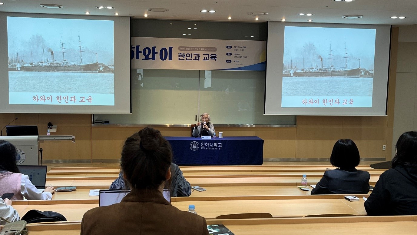 The following day, November 6, a special lecture titled “Koreans in Hawaii and Education” was held at Room 206 of the 60th Anniversary Memorial Hall at Inha University. In her lecture, Director Lee vividly traced how early Korean immigrants who had left Incheon Port for Hawaii established schools and social organizations—centered around the Methodist Church—to solidify their communal identity and social foundation.