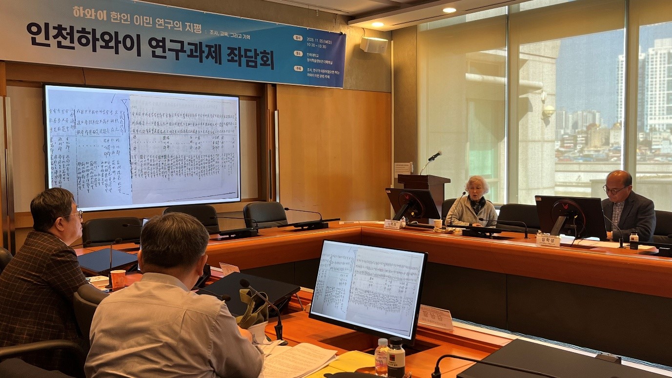 11월 5일(수)에는 인하대학교 정석학술정보관 대회의실에서 인하대 국제관계연구소, 한국학연구소, 한국이민사박물관의 연구진 및 보도국 관련자가 참석한 가운데, 이덕희 소장을 초청한 학술 좌담회가 열렸다. 이 자리에서 이덕희 소장은 수십 년간 하와이 현지에서 직접 수집한 귀중한 1차 사료들을 소개하며, 하와이 한인 이민자들의 교육, 종교활동, 전쟁 참여 등 더욱 다변화된 주제가 한국학 연구의 시야 안에서 새롭게 조명될 필요가 있음을 강조하였다. 특히 ▲하와이 전쟁신부(Chaplains)와 미군정 복무자들, ▲호노울리울리(Honouliuli) 포로수용소 관련 자료, ▲하와이 내 한인학교 및 교회 기록 등의 주제가 향후 공동연구로 발전될 수 있는 가능성이 논의되었다.