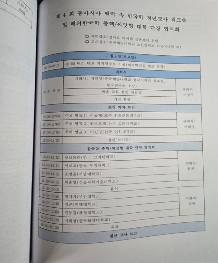 학술대회는 금요일 저녁 도착 직후 만찬으로 시작되어, 토요일 오전 8시부터 오후 5시 30분까지 이어진 본회의와 세션 발표, 그리고 이어진 공식 만찬까지 하루 일정 내내 심도 있는 토론과 교류가 진행된 강행군의 일정이었다. 특히 이번 행사를 주최한 이해영 교수(칭다오 중국해양대학교 한국어학과)와 연구팀은 활발한 교류를 통해 K-학술확산사업의 취지에 깊이 공감하며 향후 협력과 공동사업 추진 의사를 표명하였다.