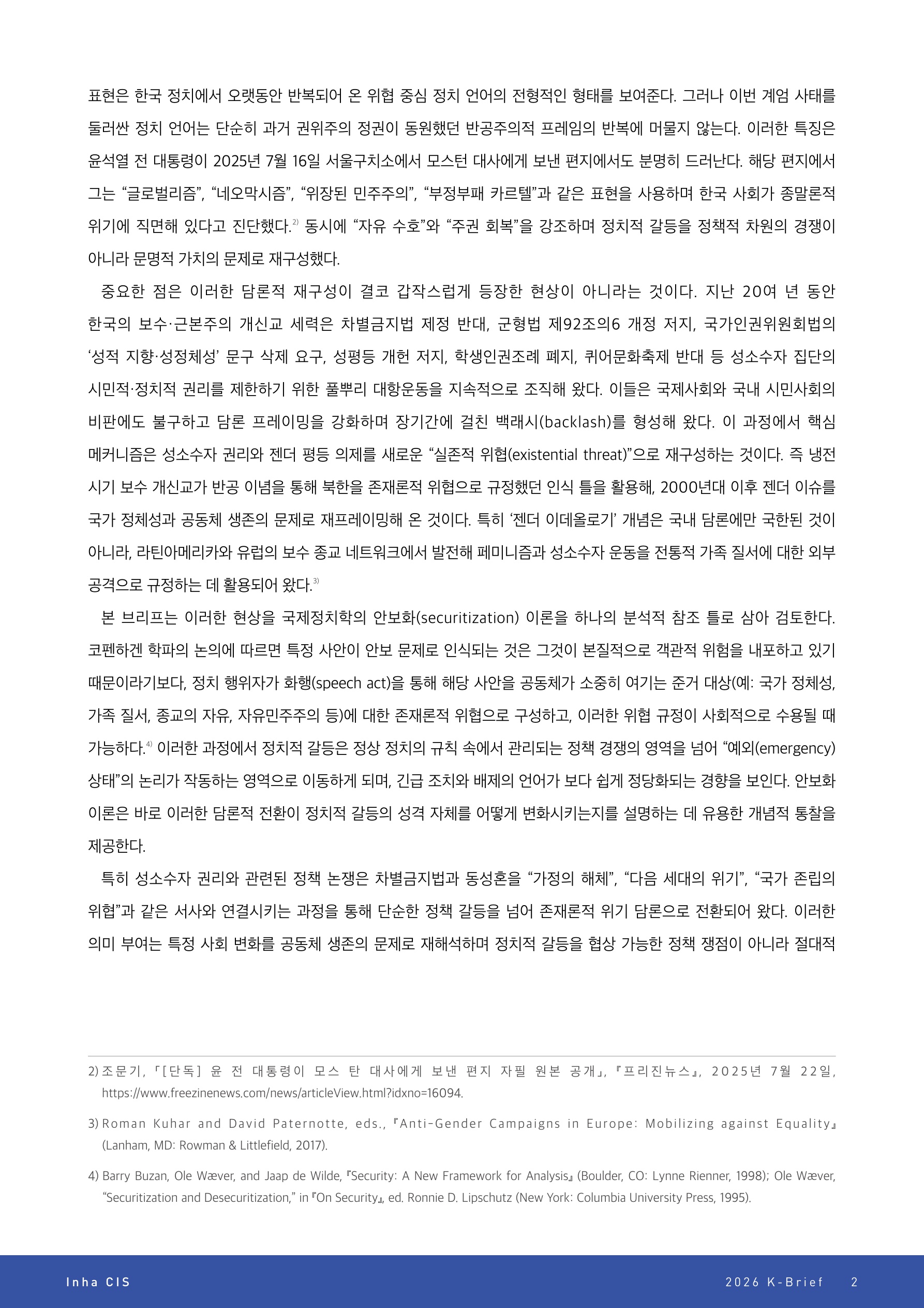 2·3 계엄 담론과 한국 보수 개신교의 문화전쟁: 정체성 형성과 위협 인식의 안보화를 중심으로