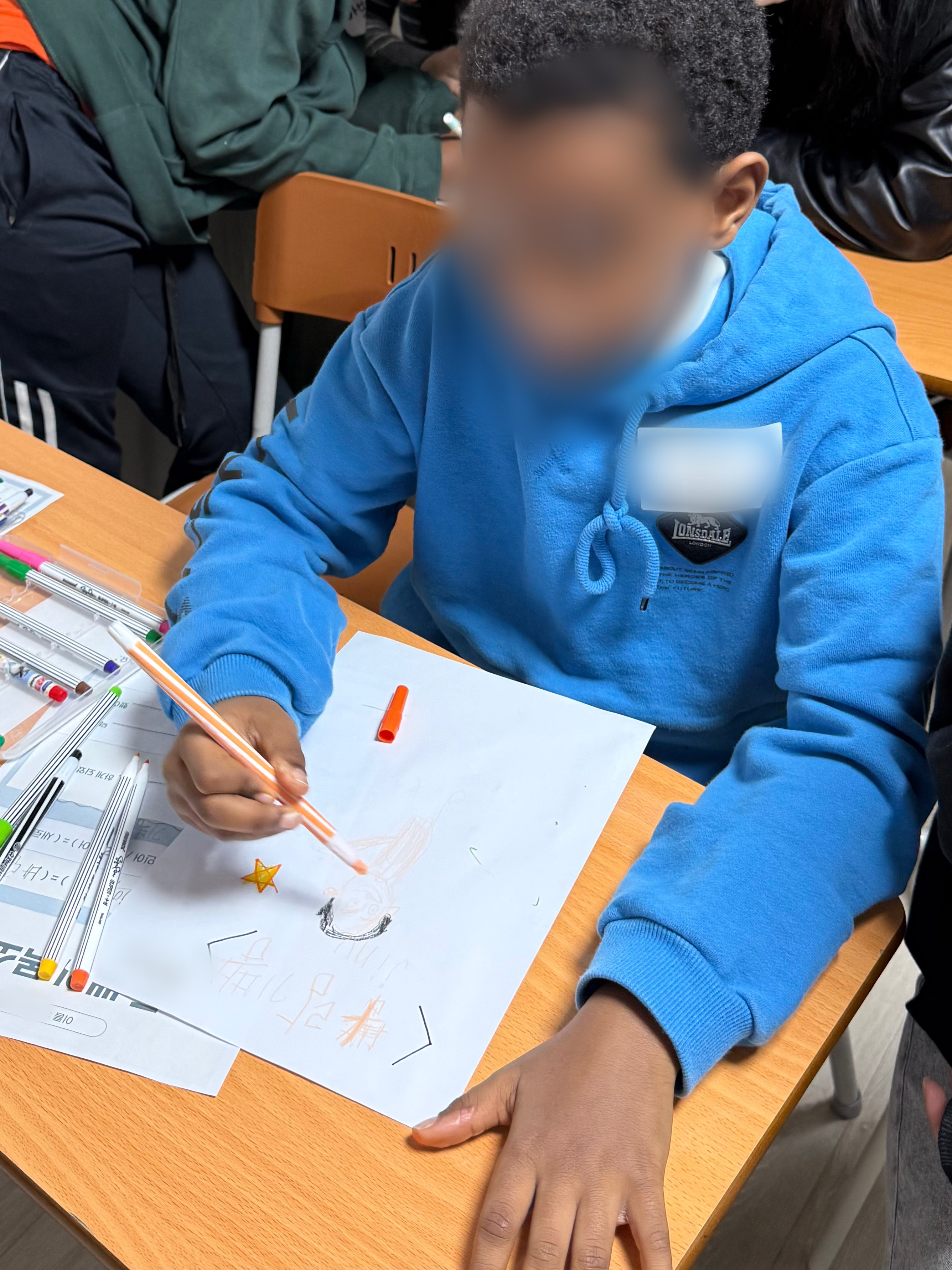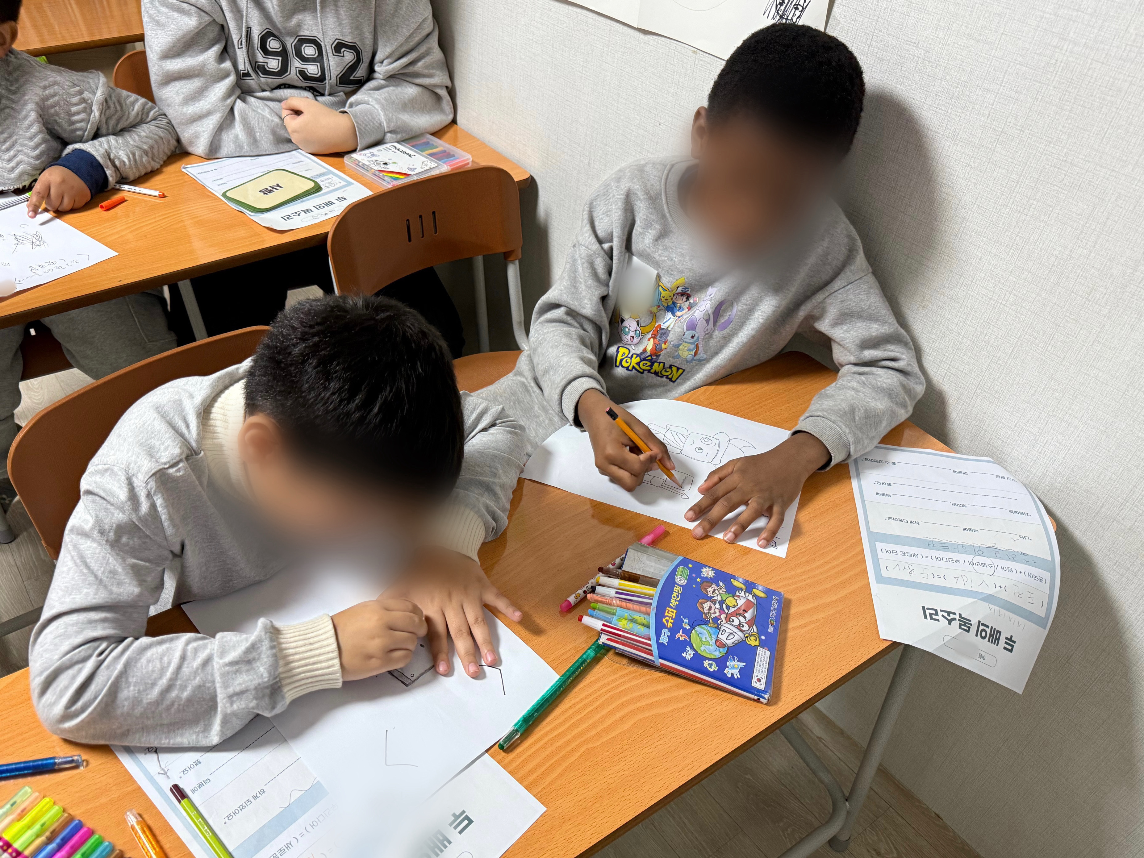 단어가 완성되자 아동들은 단어가 어떤 모습일지 상상해 그림으로 표현하는 ‘캐릭터 창작 활동’에 몰입했다. 단순한 미술 활동을 넘어, 자신이 만든 단어의 성격·감정·기능 등을 시각화하는 과정에서 아이들은 매우 높은 참여도를 보였다. Korus팀은 아이들이 스스로 의미를 찾아갈 수 있도록 질문을 던지며, 언어와 이미지가 연결되는 과정을 자연스럽게 도왔다.
