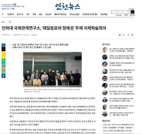 [인천뉴스] 김종국 기자, 인하대 국제관계연구소, ‘재일동포와 정체성’ 주제 국제학술회의 2025.01.12. http://www.incheonnews.com/news/articleView.html?idxno=433176