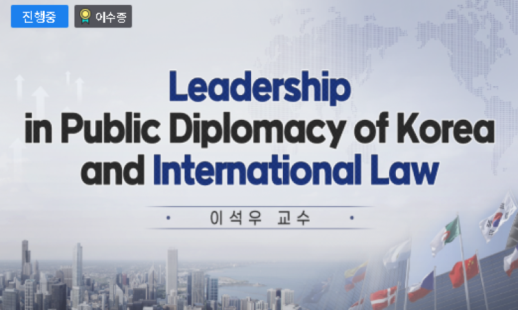 강좌명 Leadership in Public Diplomacy of Korea and International Law 교수 이석우(인하대학교 법학전문대학원) 강좌소개 국제통화기금(IMF)의 2023년 10월 국내총생산(GDP) 데이터에 따르면 한국, 중국, 일본 등 동아시아 3국은 세계 2위(중국), 4위(일본), 13위(한국)의 경제 대국입니다. 동아시아 3개국의 GDP를 합치면 전 세계 GDP의 약 23%를 차지합니다. 이들 국가는 공통된 문화적 배경, 역사적 관계, 지리적 근접성으로 인해 흔히 '동아시아'로 묶입니다. 이들 국가를 하나의 지역적 실체로 취급한다는 전제 하에 수많은 연구가 수행되어 왔고 지금도 계속되고 있습니다. 이러한 전통적인 접근 방식은 지역적 틀 내에서 이들 국가의 상호 관련성에 초점을 맞춘 수많은 연구 노력의 기초가 되었습니다.그러나 미국과 유럽연합(EU)과 함께 전 세계의 약 26%를 차지하는 지정학적 그룹의 일원으로서 동아시아 국가들이 다른 지역에 위치한 국가들에 비해 규범적 기준에서 공평하게 평가되고 있는지에 대한 의문이 남아 있습니다. 이에 본 글은 미국, EU와 함께 세계 3각 구도를 형성하고 있는 동아시아 국가들이 각자의 역할을 효과적으로 수행하고 있는지 국제법적 관점에서 평가하는 것을 목적으로 합니다. 이 평가는 국내총생산(GDP)이 비슷한 국가들이 국제 규범(국제법)의 발전에 비례적으로 기여하고 있는지, 그렇지 않다면 그 이유는 무엇인지에 초점을 맞추고 있습니다. 나아가 한-중-일 3국이 동아시아라는 지역적 경계를 넘어 글로벌 위상에 걸맞은 국제규범(국제법) 발전에 주도적인 역할을 수행할 수 있는지 살펴봅니다. 궁극적으로 이 글의 목적은 합법성, 도덕성, 동시대성 등 보편적 국제규범(국제법)의 필수 전제조건에 대한 동아시아 국가들의 전향적인 성찰을 촉구하는 데 있습니다. 주차별 학습내용 1주차 From your own country, is there a unique perspective of international law? (1) 2주차 From your own country, is there a unique perspective of international law? (2) 3주차 What has been your country’s contribution to the development of international law? (1) 4주차 What has been your country’s contribution to the development of international law? (2) 5주차 How would you evaluate Korea’s state practice of international law? (1) 6주차 How would you evaluate Korea’s state practice of international law? (2) 7주차 Reflections on the Interpretation and Application of International Law by South Korea, China, and Japan and Leadership in the Formation of International Norms in East Asia