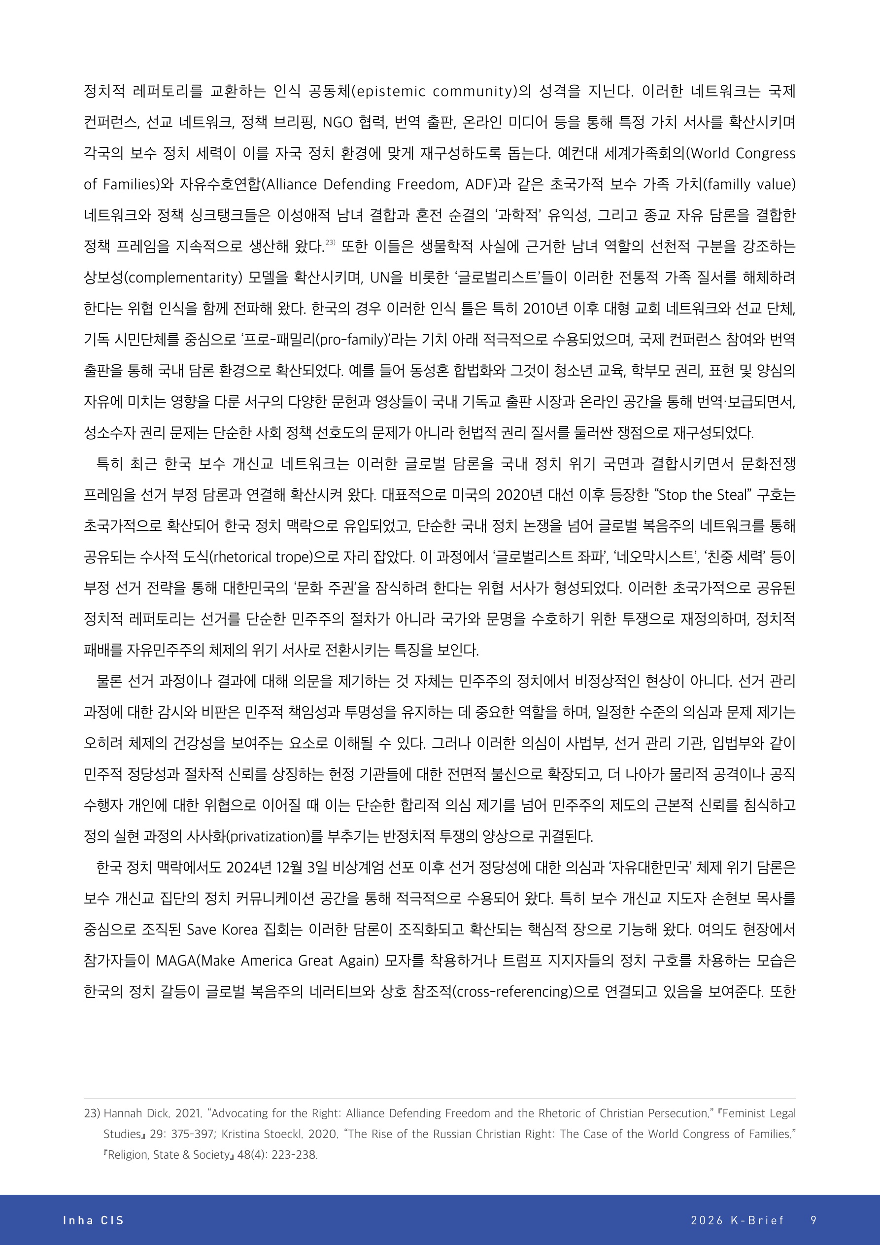 2·3 계엄 담론과 한국 보수 개신교의 문화전쟁: 정체성 형성과 위협 인식의 안보화를 중심으로
