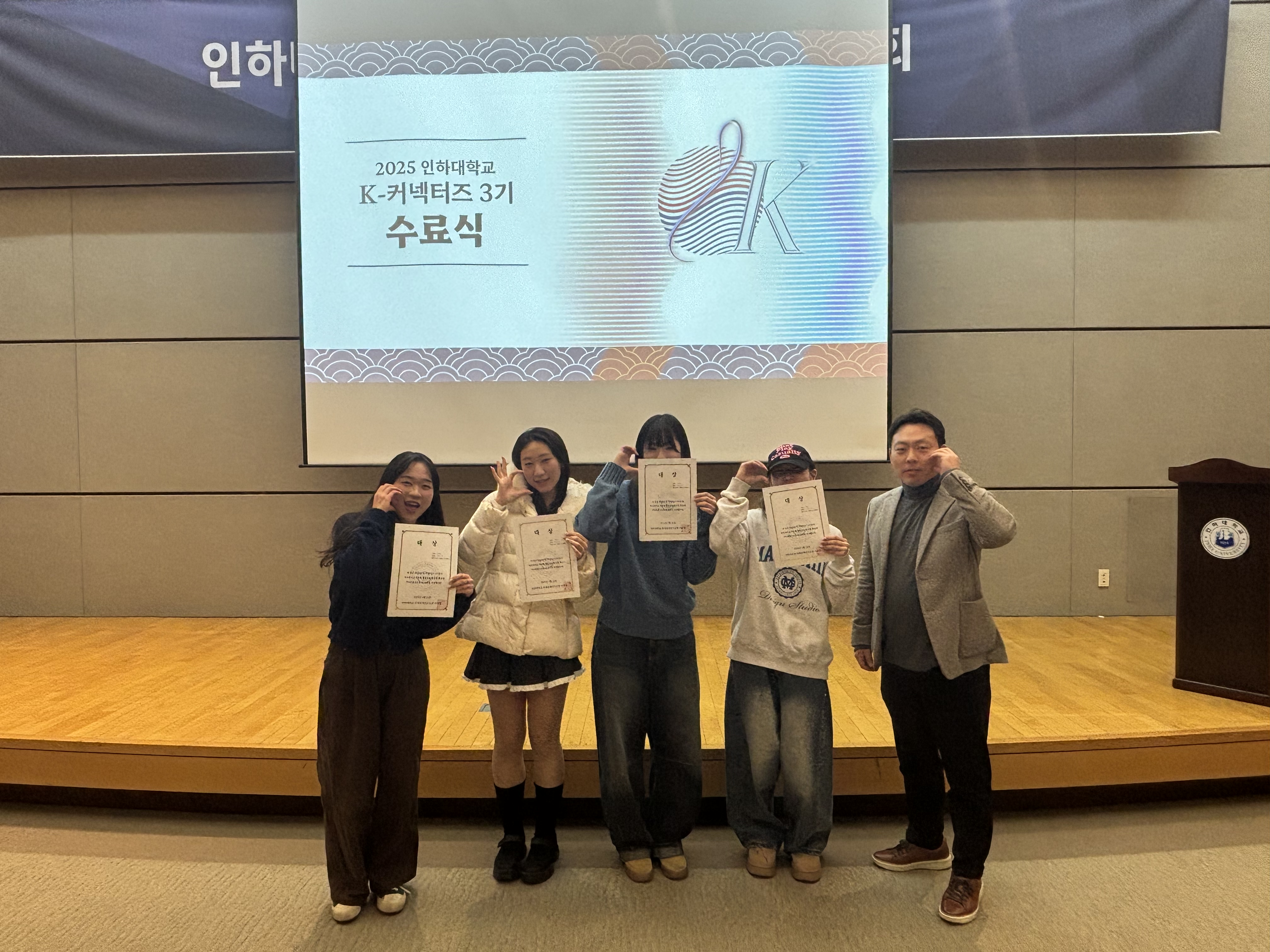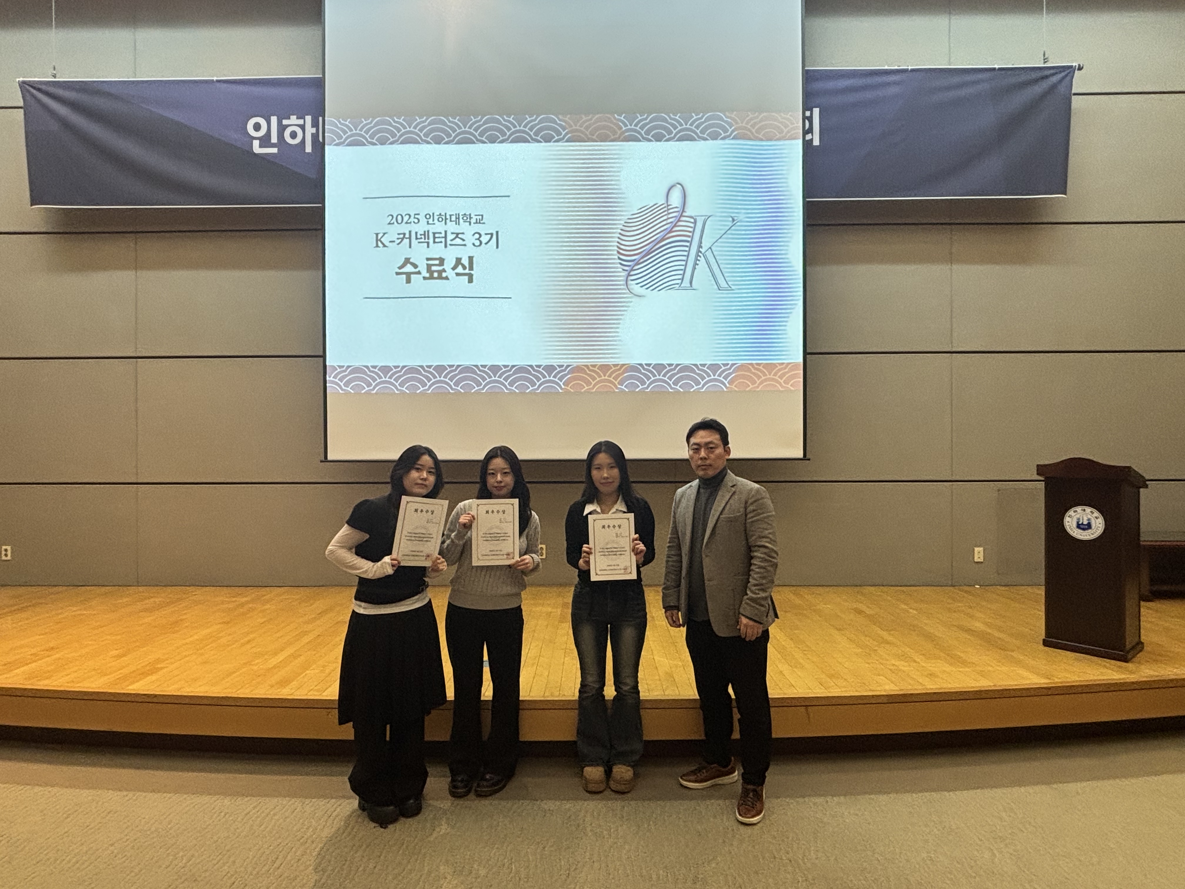 인하대학교 국제관계연구소 산하 K-학술확산연구센터는 지난 1월 15일, 인하대학교 정석학술정보관 내 국제회의장에서 ‘K-커넥터즈 3기 성과발표회’를 개최했다. 이날 행사는 사회과학 분야를 중심으로 한 한국학 확산을 목표로 대학생들이 직접 기획·운영한 프로젝트의 성과를 공유하는 자리로 마련되었으며, 성황리에 마무리됐다.
